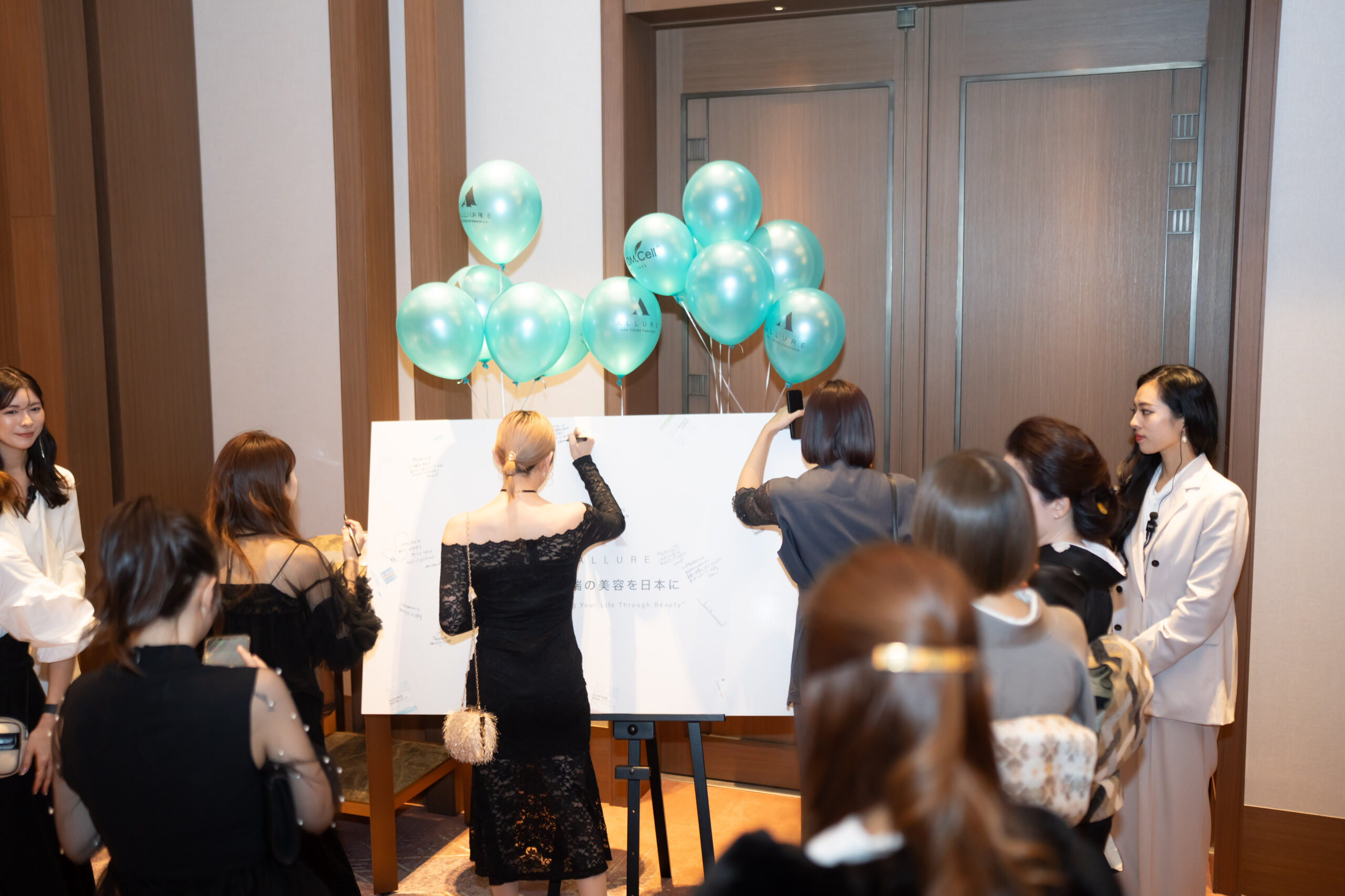 本パーティーは、新発売の次世代のスカルプ再生ケア「ヘアロペーシア(頭皮ケア用スピキュール)」(RIBESKIN)、美容液成分を贅沢に配合した「B.T.X.グロウバーム ファンデーション」(DM.Cell)のローンチを記念し、日頃よりALLUREを支えてくださっている会員の皆様へ、その魅力をいち早くお届けする場として開催されました。