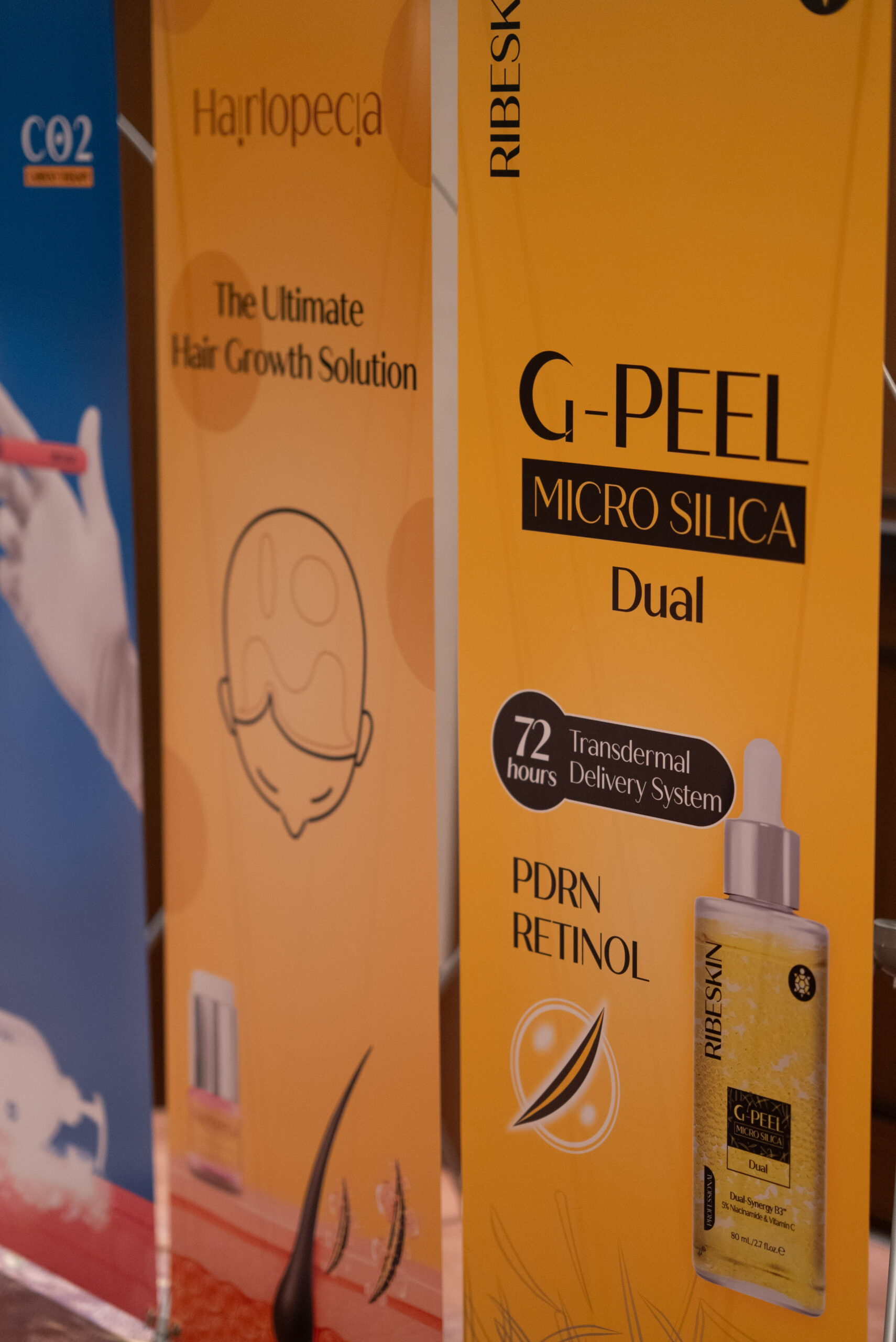 RIBESKINブースでは、日本未上陸のG-PEELなどの展示に皆さま興味津々。